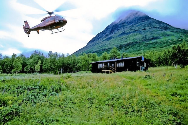 Tillbaka vid Tarrekaisestugan efter en rundtur. Bevittnar hur två vandrare tar snabbaste vägen ut.