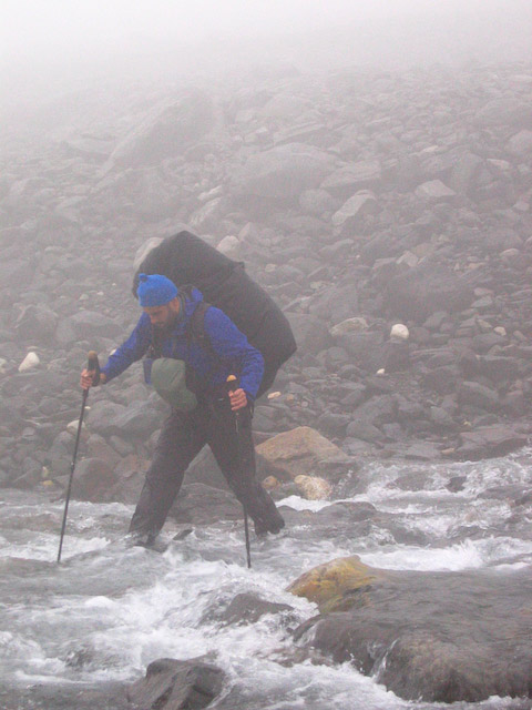Tålamodet tryter. Vi går på GPS över Stuor Jierttá i tjockan.