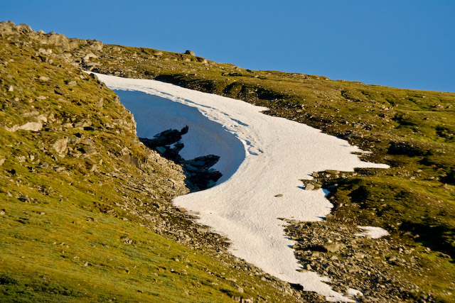 I skyddade lägen kan snön överleva hela sommaren. Uppnår den tillräcklig tjocklek för att is ska börja bildas och trycket ger en rörelse av denna is, så har man en glaciär.