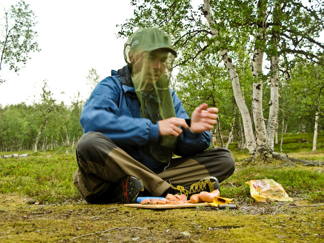 Patrik skär korv. Foto: Svante Hall