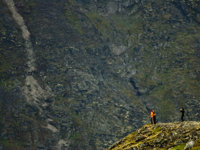 Ett gäng vandrare drar av några snapshots innan de fortsätter ned i dalen.