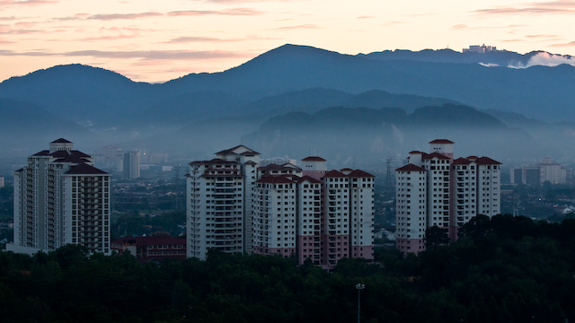 Från våning nr 20 i ett av höghusen i Mt Kiara, Kuala Lumpur. Uppe till höger syns Genting Highland.