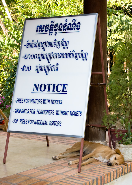 Att utlänningar måste betala mer är norm i vissa länder. Skylt utanför en offentlig toalett i Angkor-komplexet, Kambodja.