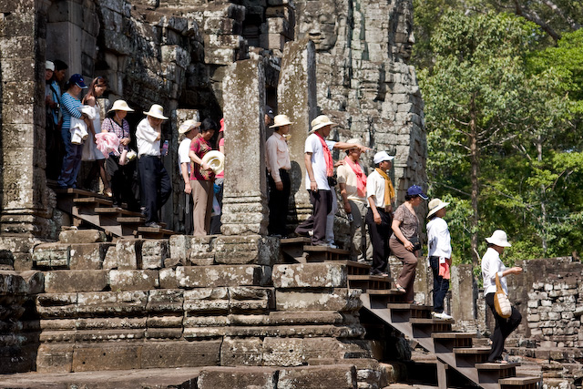 Koreanska turister väller ut från Bayon. Sades att det var lågsäsong, då i april. Vet inte om jag vill till Angkor under srösta turistsäsongen.