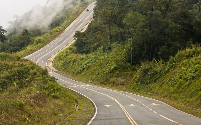 De håller just på och färdigställer en ny fin landsväg över Crocker Range, men backarna är något branta och den kommer kräva en hel del underhåll, vilket kan glömmas bort ibland.