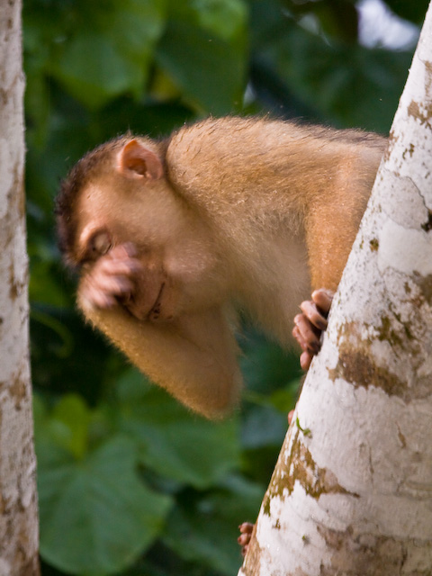 Inte en turist TILL med teleobjektiv! Makak vid Kinabatangan, Sabah, Malaysia. (Enligt kameraklockan skiljer det fyra sekunder i tid mellan denna och förra bilden)