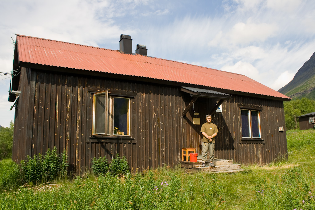 Stugvärden och fotosidanmedlemmen Walter Grape vid Tarrekaisestugan 28 juni 2009