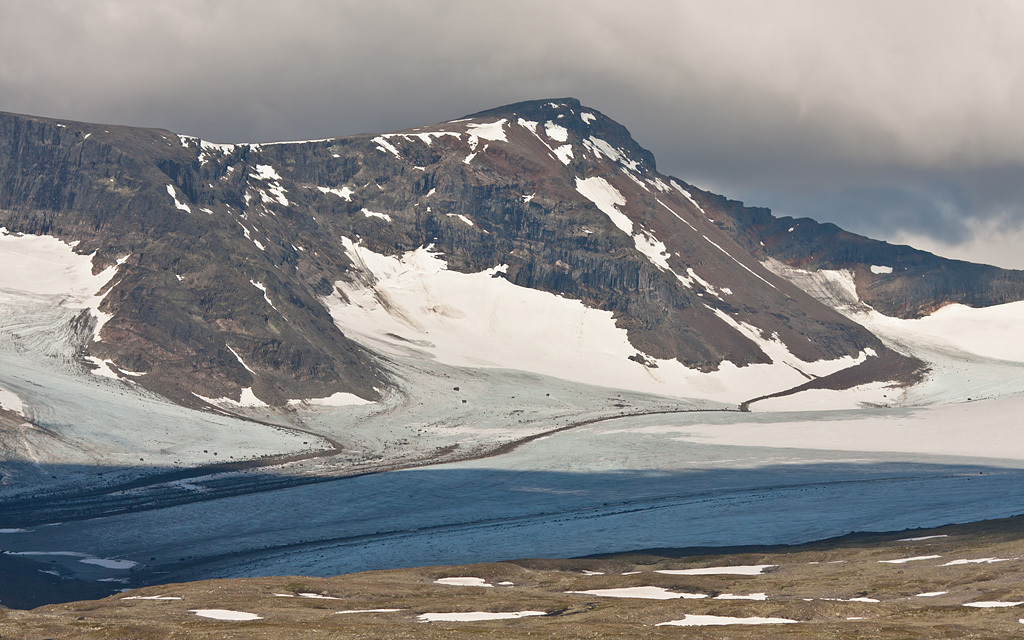 Med sin glaciär. 2005 meter över havet och högsta fjäll i Sareks sydliga halva.