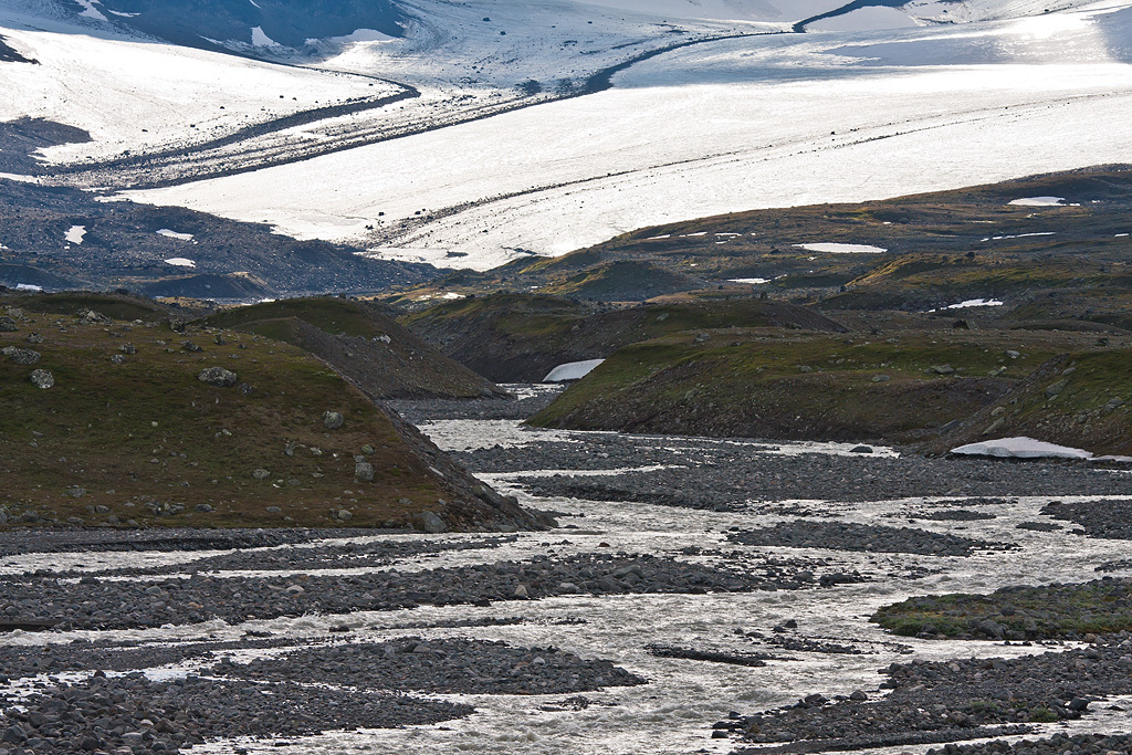 Med Pårteglaciären i bakgrunden, alltså där vattnet kommer från.