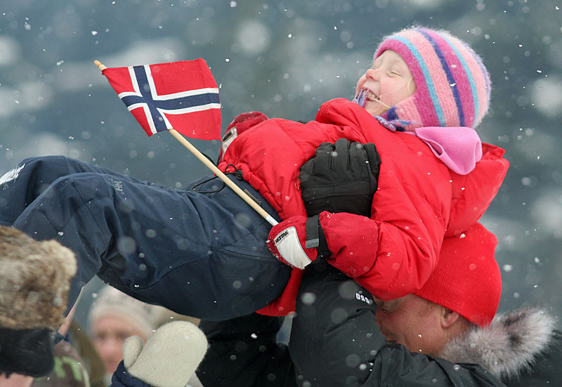 Norsk supporter modell mindre får hjälp att ta sig över avspärrningarna. Kollentävlingarna är både familjefest och..hmm...något supigt.