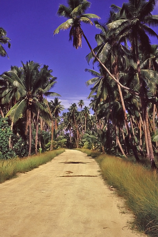 Huvudvägen runt ön Aitutaki i Cooköarna. 2000 invånare. Närmaste större ö, Rarotonga, drygt 30 mil bort över öppet vatten. 100 mil till Tahiti. En ö för sig själv, är ordet!